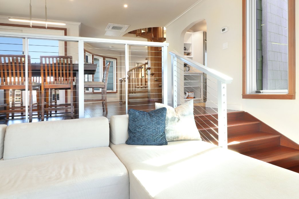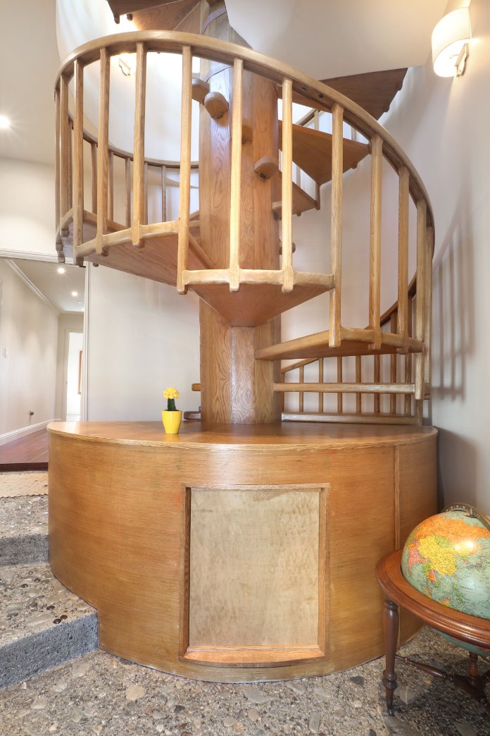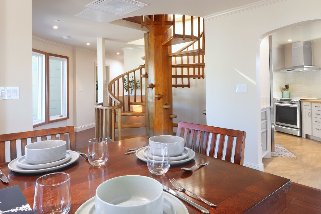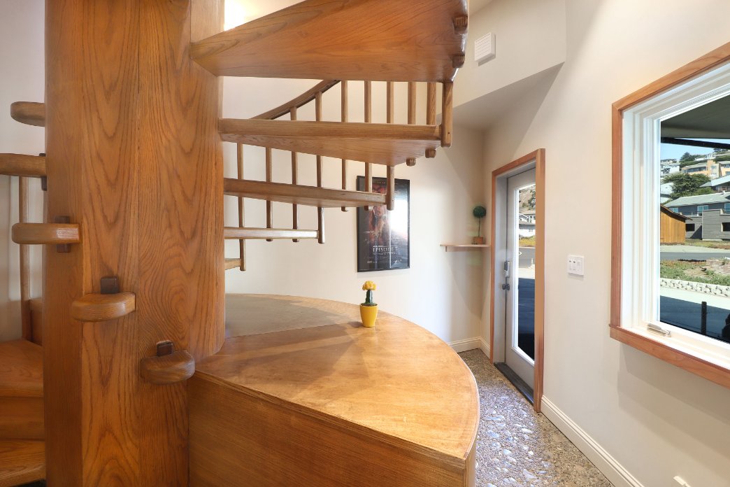 As you enter through the sand room there is a closet to store your coats and a cubby storage for all your beach toys. For the surf, boogie, and skimboards, please park them outside next to the electric car charger. Inside you’ll climb up the antique cylindrical staircase entering the upper chamber! And don’t worry, that wooden staircase has been fortified to be stronger than when it was originally built in 1978!